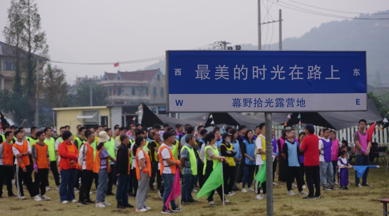 午餐后,大部队来到了幕野拾光露营地,在教练的带领下,开启趣味运动会、烧烤、百人篝火晚会的精彩时光。