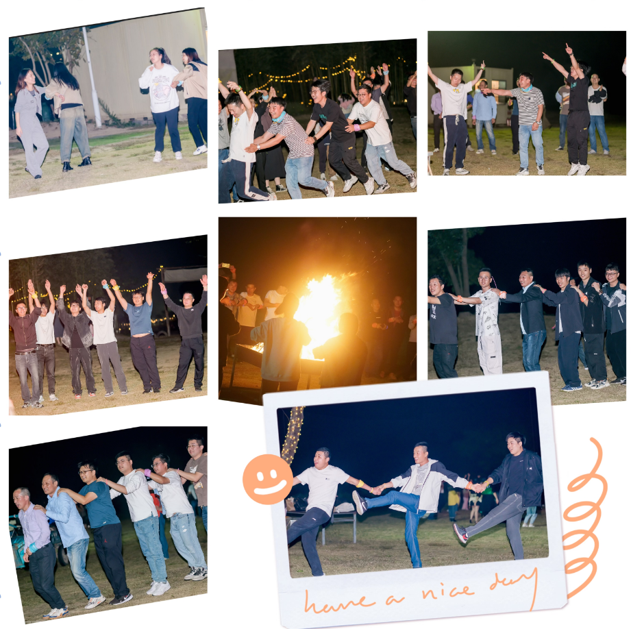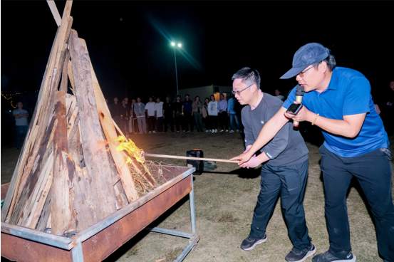 吃饱喝足后来场篝火晚会,当音乐响起,当象征希望的篝火被王总点燃,共生百人团围成一个同心圆,大家一起尽情狂欢,一起舞动,拉手跳兔子舞等各种游戏互动环节,欢呼声一浪高过一浪,远离一切纷扰嘈杂,尽情享受属于共生人的欢聚时刻。