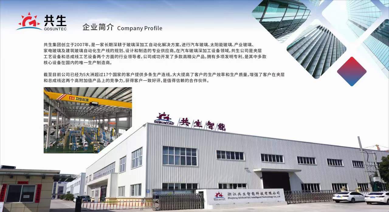 上海共生自动化科技有限公司是业内领先的工业自动化、信息化智能制造整体解决方案提供商,是集技术研究、产品开发、专业服务为一体的现代化高新技术企业。公司以互利共生为目标,以技术创新为本,以展示客户和本公司员工智慧为基础,进行汽车玻璃、建筑玻璃、太阳能玻璃、产业玻璃及家电玻璃自动化生产线的规划、设计和制造,为本土和国际客户提供优质完善的玻璃深加工自动化解决方案。