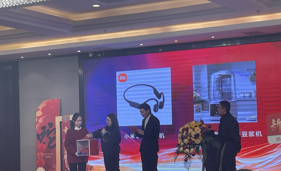 而激动人心的抽奖环节更是将现场气氛推向了一个又一个高潮。大会设置了多轮抽奖,奖品丰富多样,涵盖了美的电饭锅、九阳破壁机、苏泊尔电烤涮一体锅、小米无线洗地机、华为手表、华为平板电脑等实用好物。每一轮抽奖都让员工们心跳加速,充满期待,当幸运儿的名字被一一宣布时,现场欢呼声、掌声此起彼伏,大家共同分享着这份幸运与喜悦。